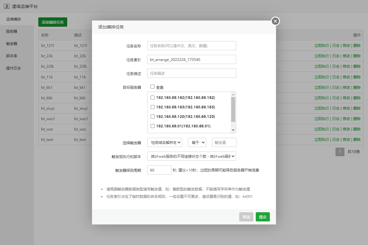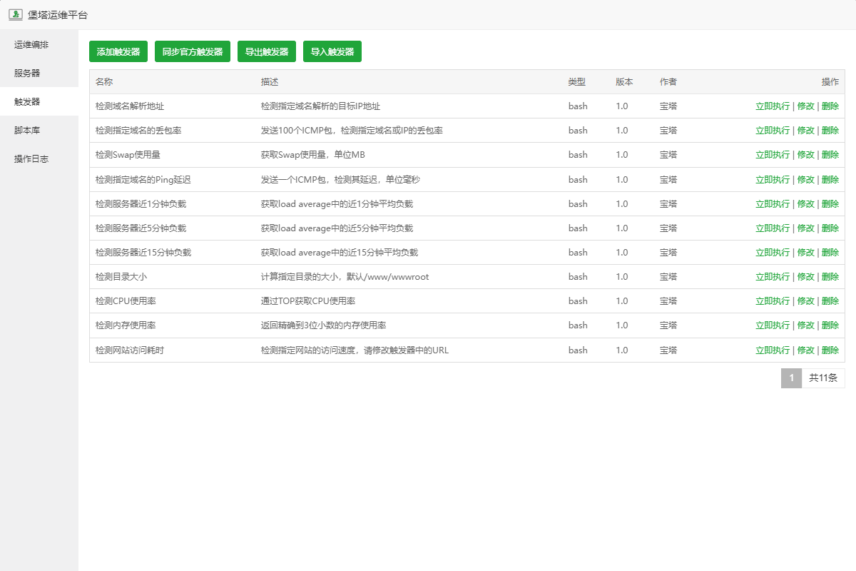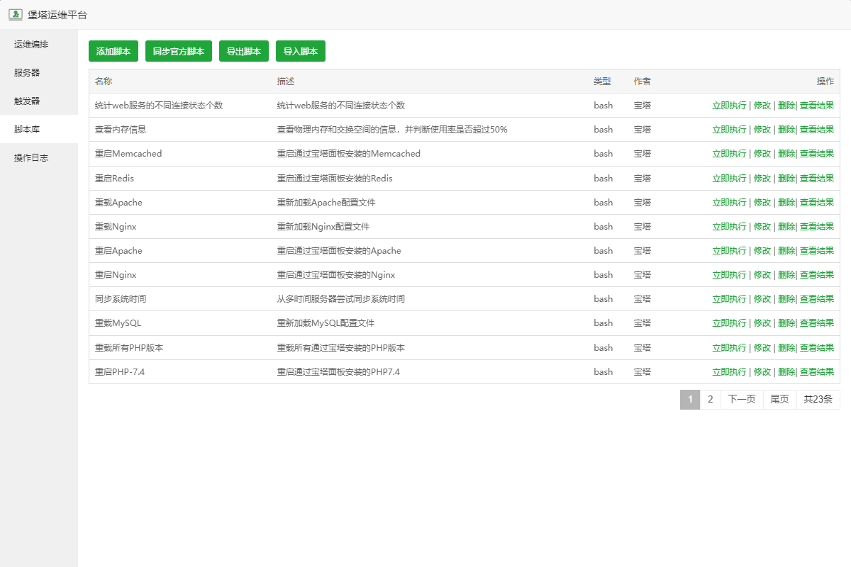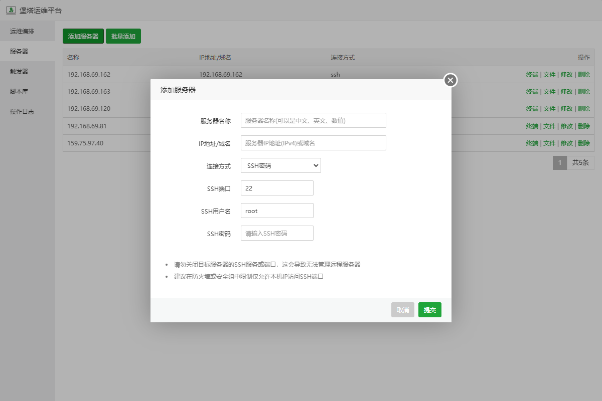 提供运维任务编排、脚本库、多台服务器批量运维、命令群发等,适用于有多台服务器的用户